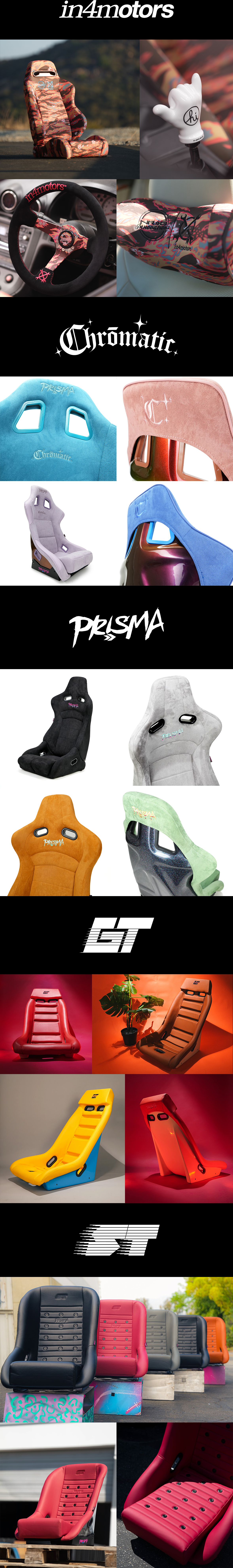 Spearheaded creative projects that amplified brand visibility, from photoshoot direction, to booth designs for the prestigious SEMA tradeshow, elevating the visual identity across the board. I also developed branding and aesthetics for various racing seat lines, collaborations, merch collections, and packaging that balanced functionality with appeal for the automotive aftermarket demographic.